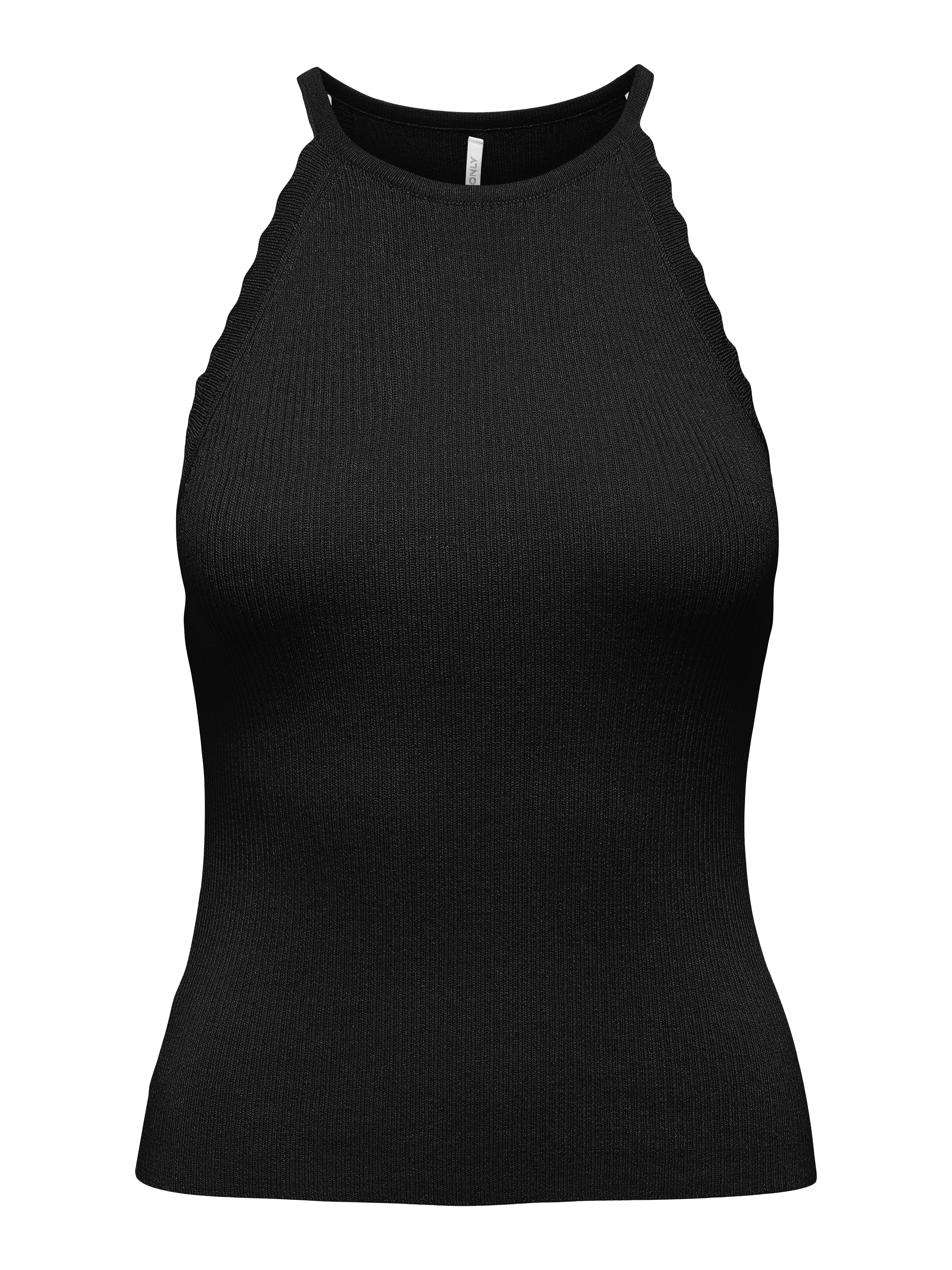 Regular Fit Halter Neck Knit Top Black Only